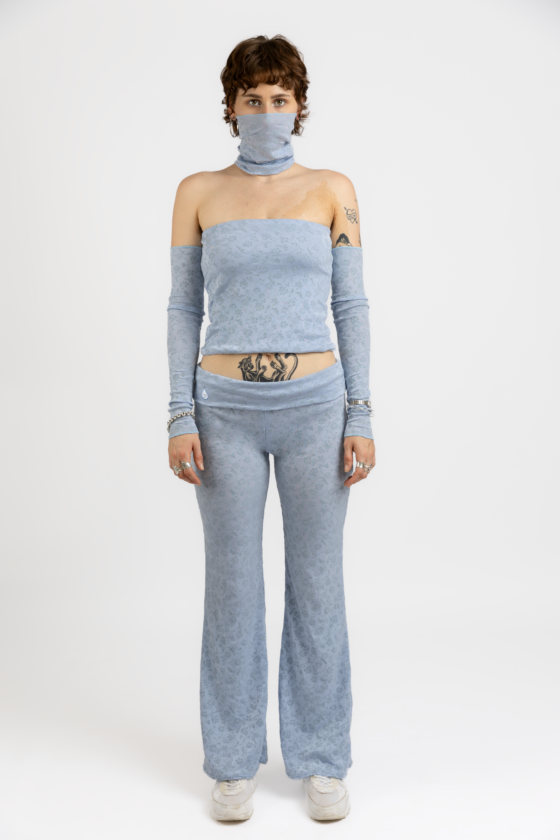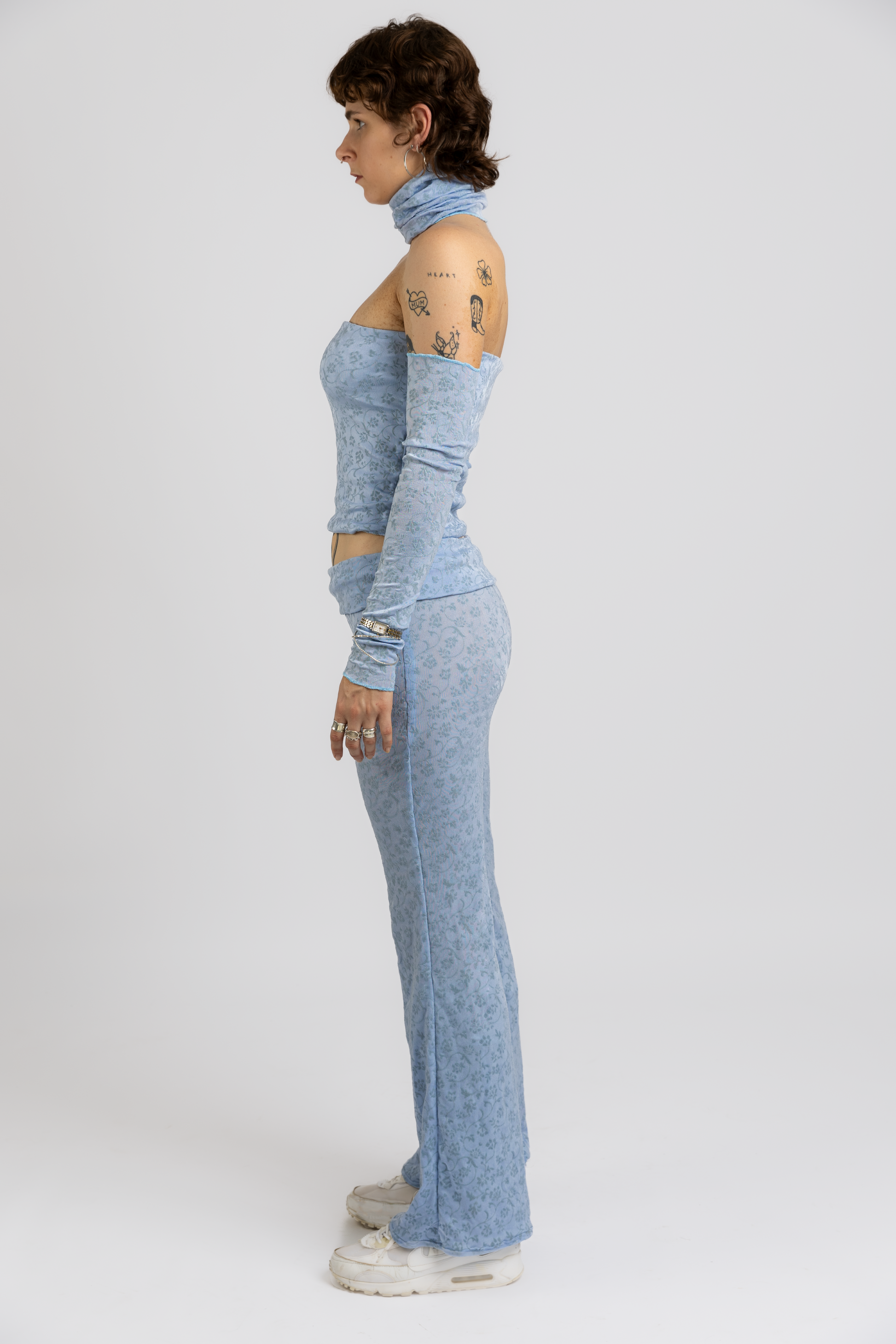 We use repurposed and limited stock of materials, this blue floral stretch is limited.