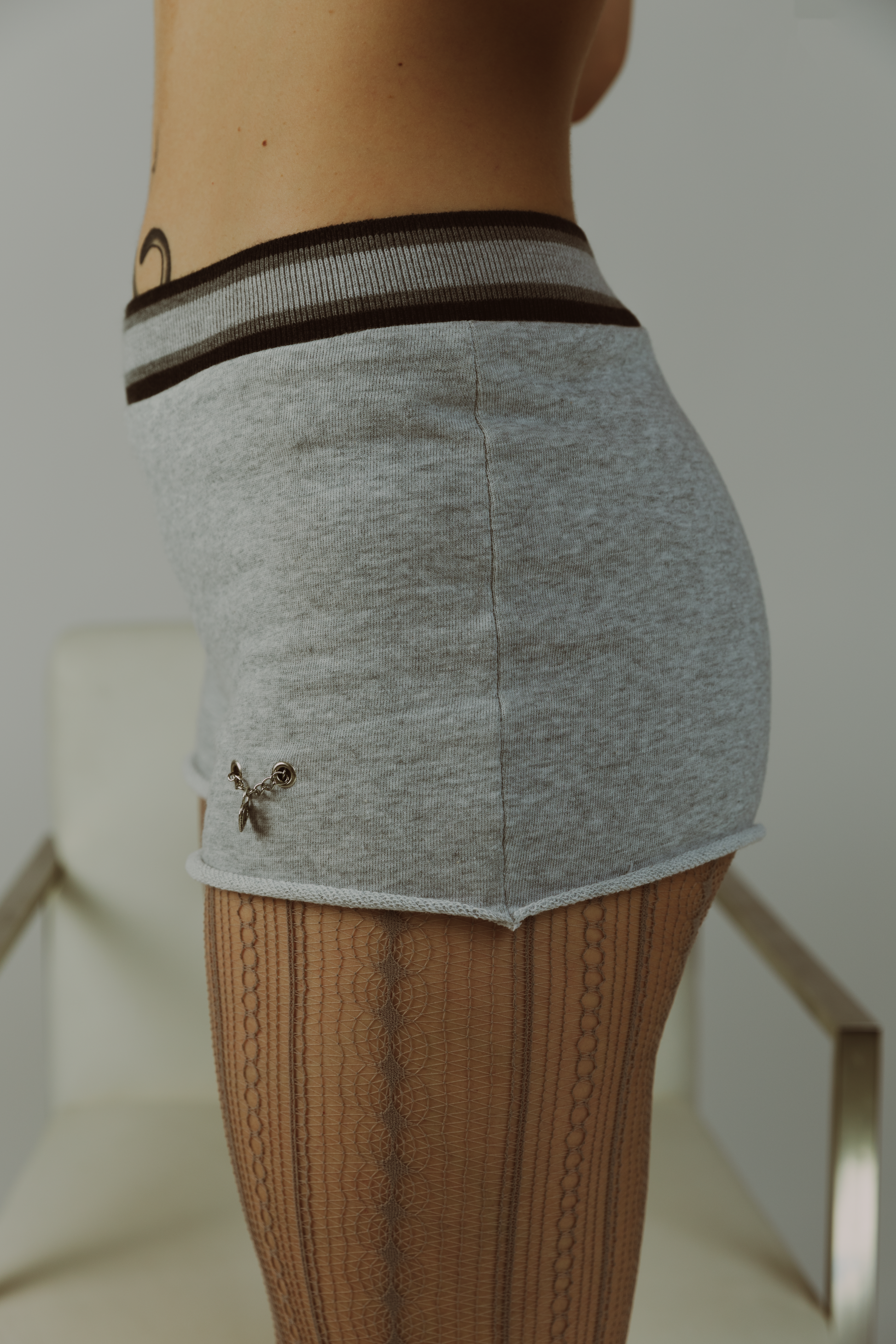 Crafted from ethically sourced jersey cotton and vintage ribbed cutoffs, these booty shorts feature a distinctive love heart chain detail on the waistband.